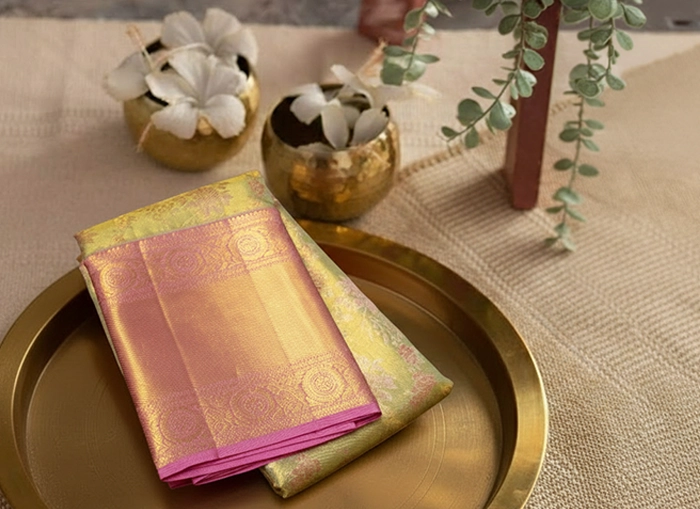 The roots of the Kanjivaram saree date back over 400 years, during the reign of the Chola dynasty. Skilled weavers migrated to Kanchipuram and began weaving silk saree inspired by temple architecture, nature and mythology. These weavers are believed to be descendants of Sage Markanda, the divine weaver of the gods.