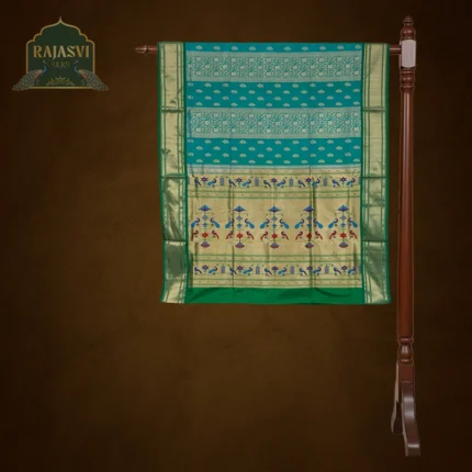 या पैठणीच्या पदरावर आणि काठावर पोपट (Parrot) आणि हंस (Swan/Lotus) यांसारख्या पक्ष्यांची नक्षी विणलेली असते. ही पैठणी हातमागावर विणताना 'कडियाळ' (Interlocking Weaving) सारख्या खास तंत्रांचा वापर केला जातो, ज्यामुळे साडी दुहेरी (Reversible) दिसते.