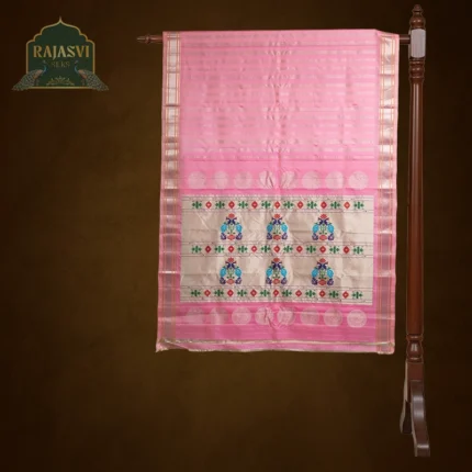 हातमागावर विणलेल्या या प्रकारात पैठणी साडीच्या पदरावर आणि काठावर श्रीकृष्णाशी निगडित नक्षीकाम, जसे की मोरपंख, बासरी, कमळ किंवा गोकुळप्रेरित दृश्ये, नजाकतीने विणलेली असतात. या नक्षीमुळे साडीला आध्यात्मिक, शांत आणि तरीही राजेशाही लुक प्राप्त होतो.