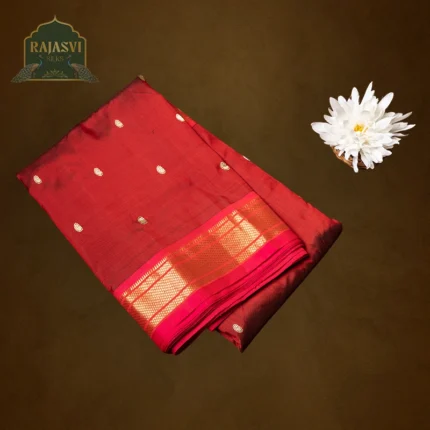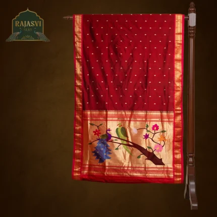 We use only natural, high-quality yarns pure silk and pure cotton to create the rich texture and durability that define a true Paithani saree.