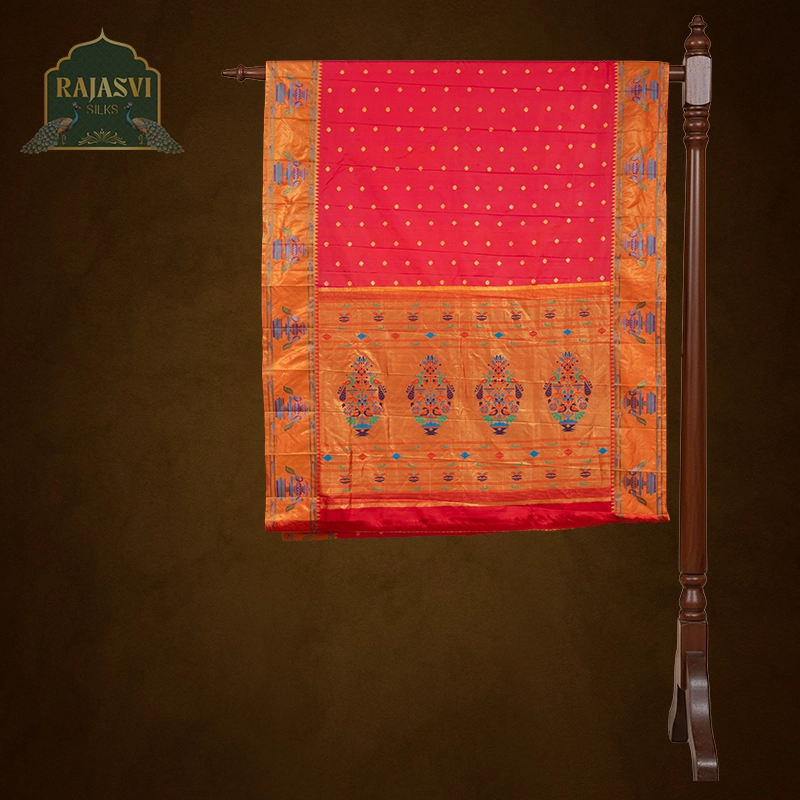 We use only natural, high-quality yarns — pure silk and pure cotton — to create the rich texture and durability that define a true Paithani saree.