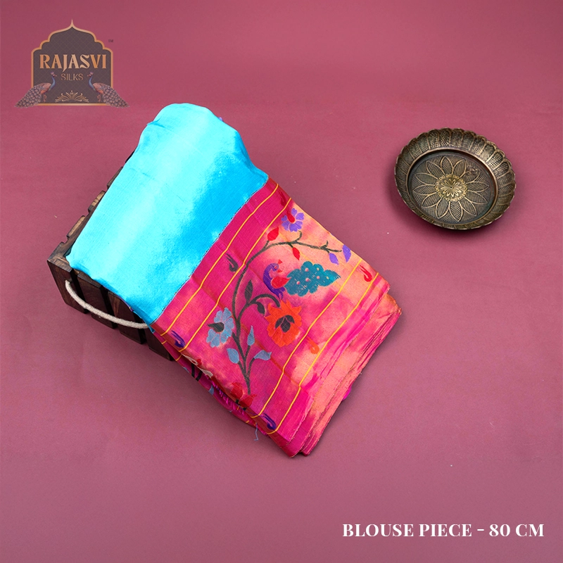 We use only natural, high-quality yarns pure silk and pure cotton to create the rich texture and durability that define a true Paithani saree.