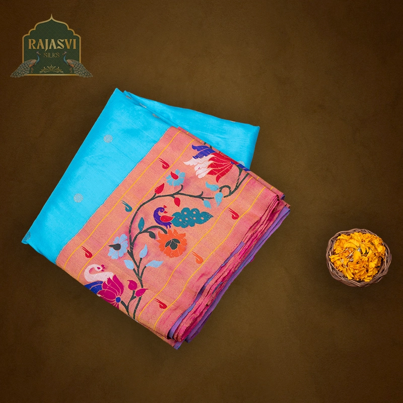 We use only natural, high-quality yarns — pure silk and pure cotton — to create the rich texture and durability that define a true Paithani saree.