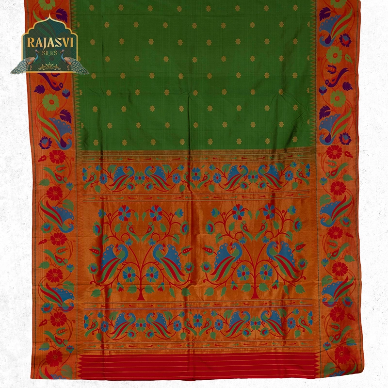 We use only natural, high-quality yarns — pure silk and pure cotton — to create the rich texture and durability that define a true Paithani saree.