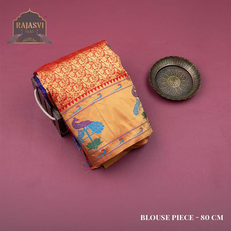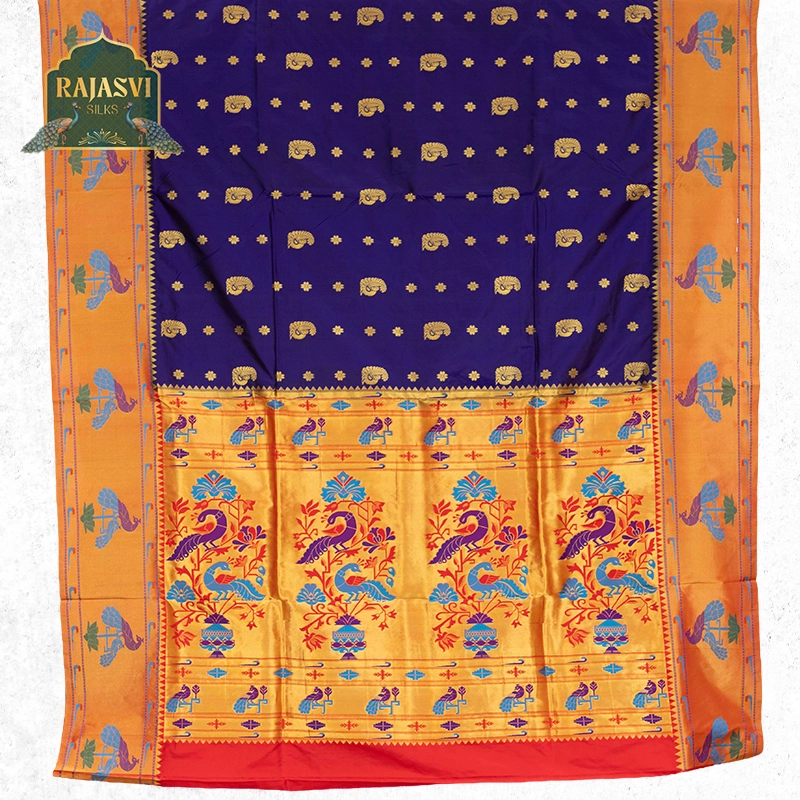 We use only natural, high-quality yarns pure silk and pure cotton to create the rich texture and durability that define a true Paithani saree.