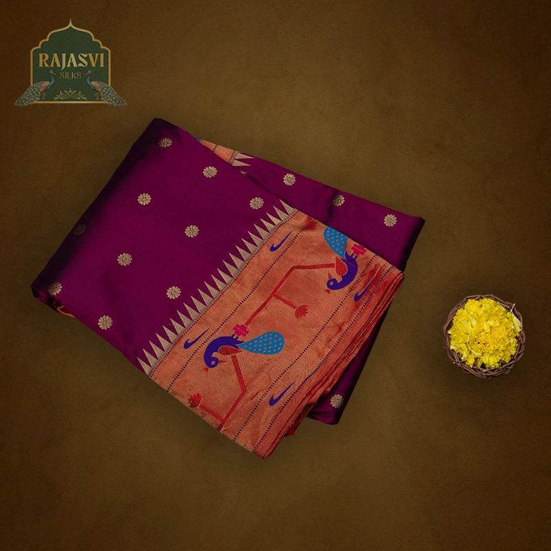 We use only natural, high-quality yarns — pure silk and pure cotton — to create the rich texture and durability that define a true Paithani saree.