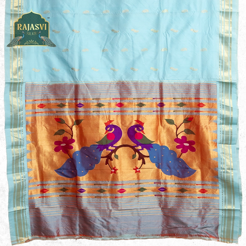 We use only natural, high-quality yarns pure silk and pure cotton to create the rich texture and durability that define a true Paithani saree.