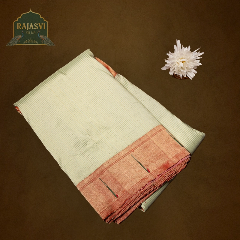 Tissue with Zari Stripes All over the Saree with Very Unique Designer Pallu